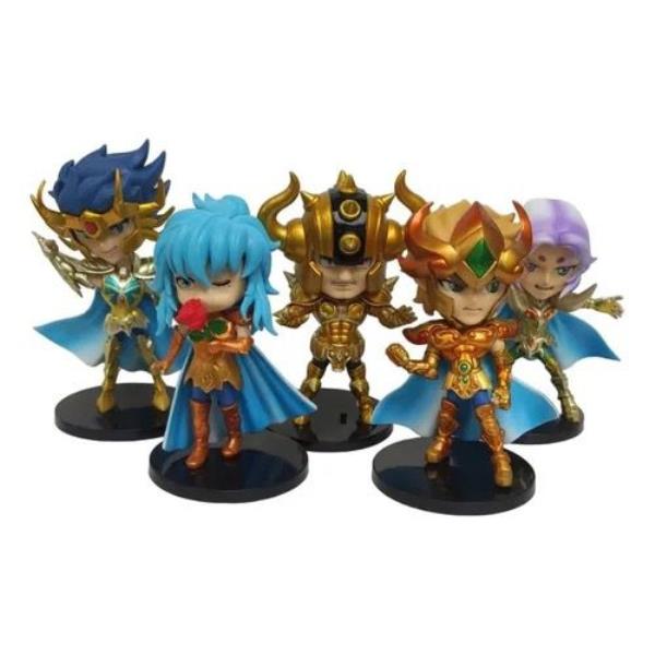 GASHAPONES SAINT SEIYA CABALLEROS DEL ZODIACO ORO 5PCS PVC HARD TOY SET WITH BASE SIZE 12-13 CM
