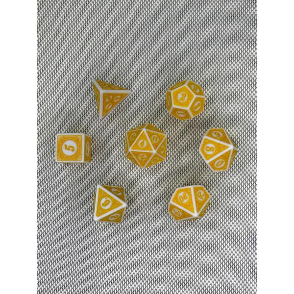 SET 7 DADOS ROL ESPECIALES #03 AMARILLO & BLANCO