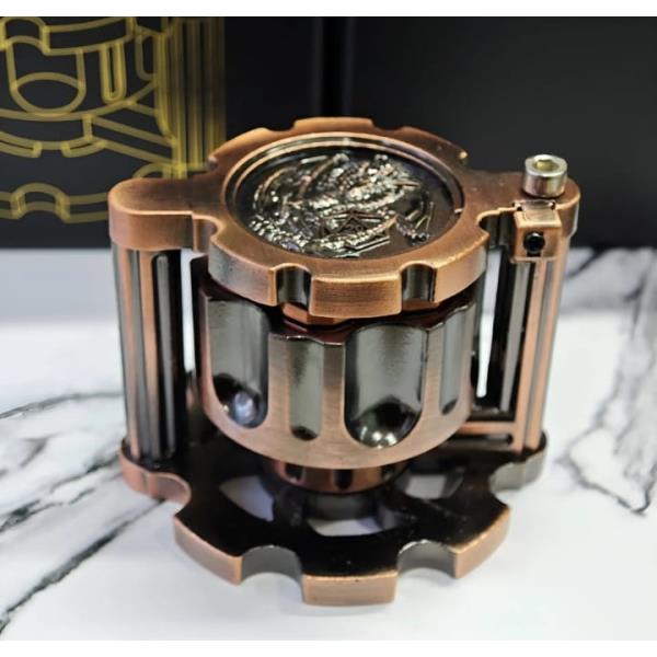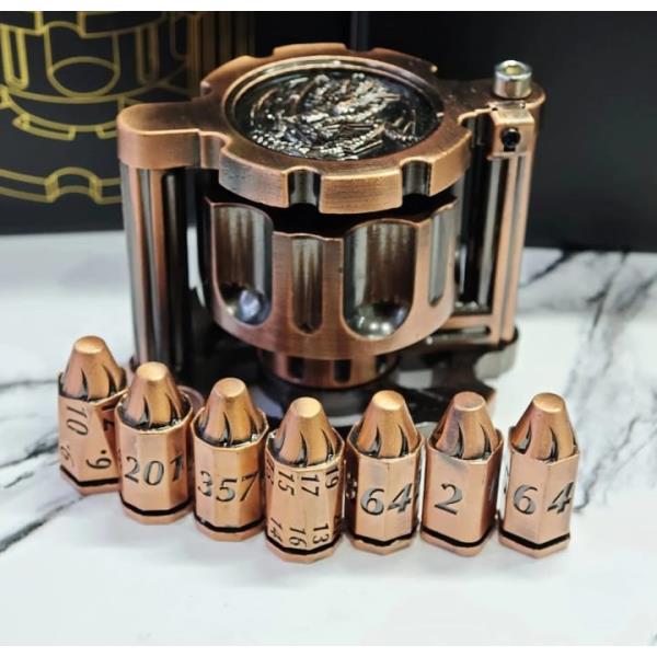 SET DE DADOS BALA POLIEDRICOS DE METAL CON CONTENEDOR DE CILINDRO GIRATORIO COBRE