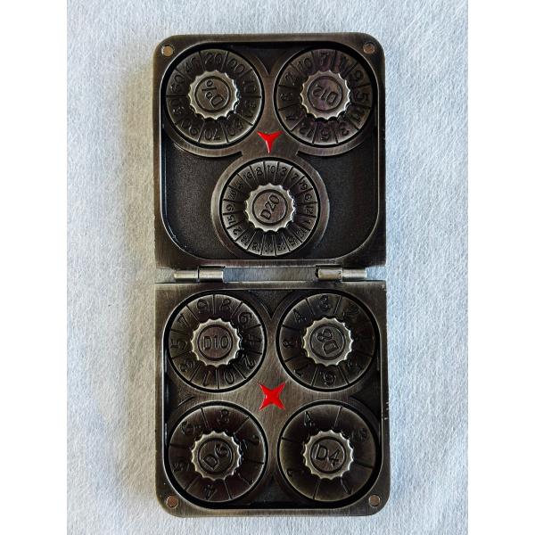 SET DE DADOS METALICOS SPINNER CON ESTUCHE SIMIL CUERO #04 PLATEADO