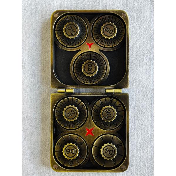 SET DE DADOS METALICOS SPINNER CON ESTUCHE SIMIL CUERO #06 DORADO